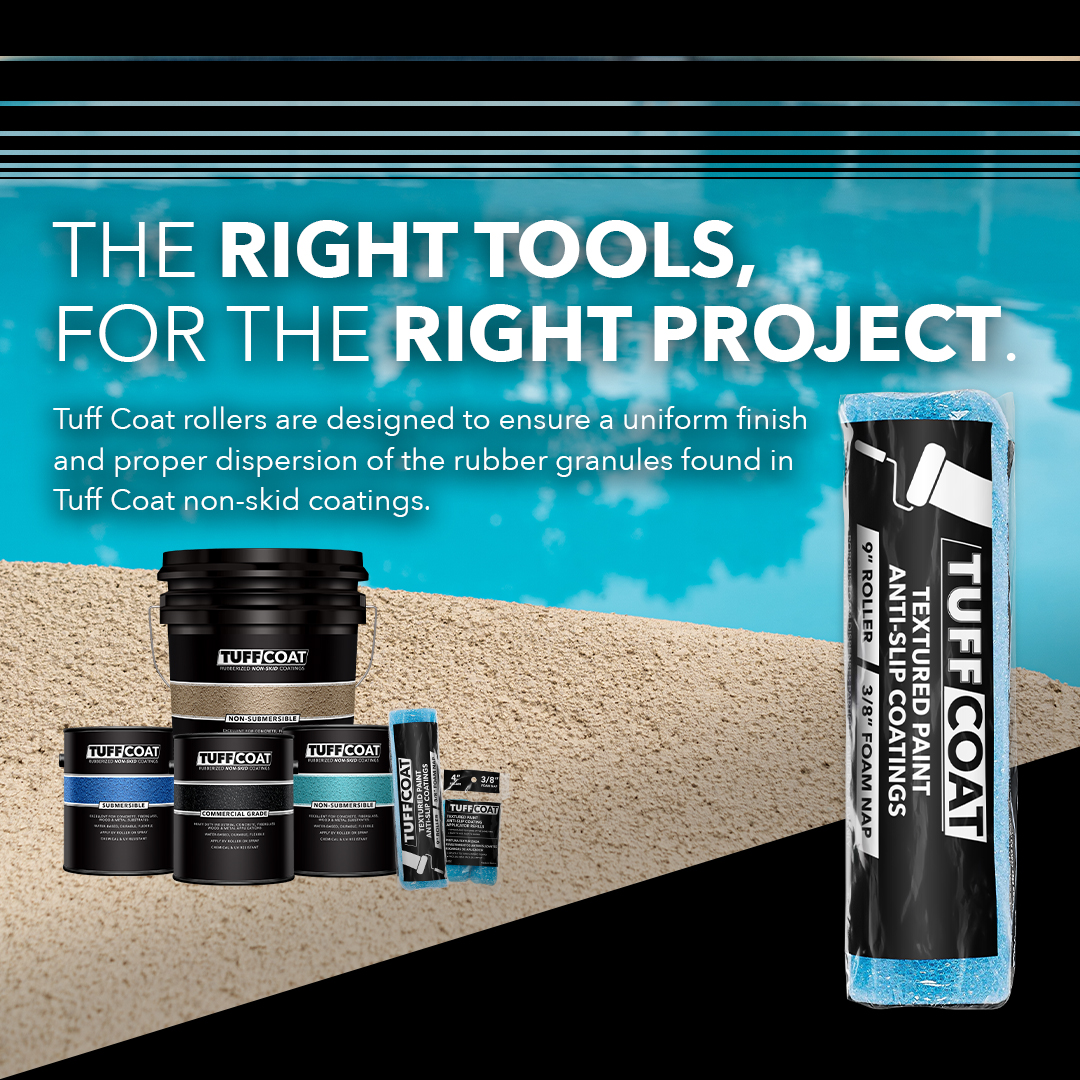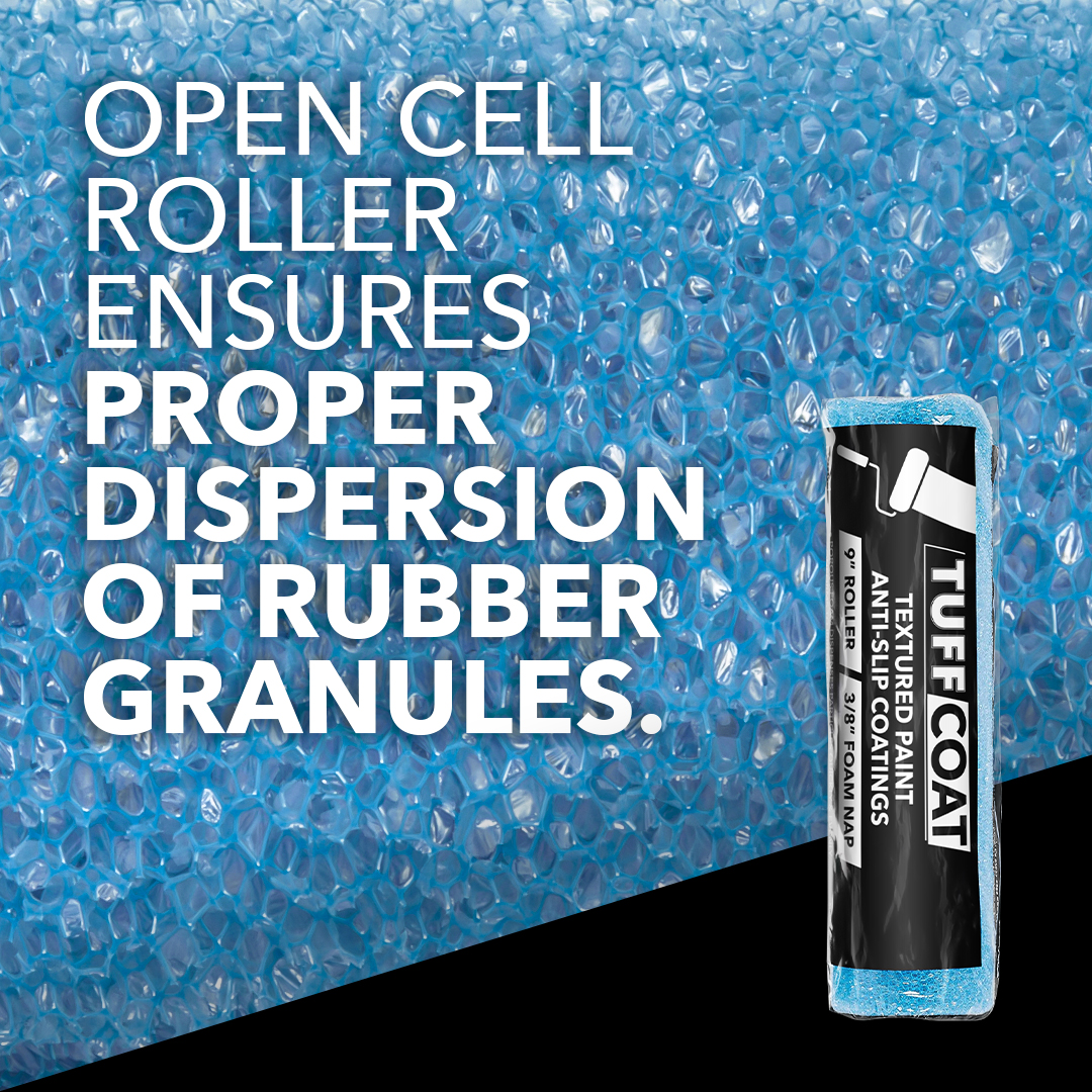 Tuff Coat non-skid coatings must be applied by Tuff Coat rollers. Tuff Coat rollers are designed to ensure a uniform finish and proper dispersion of the rubber granules.